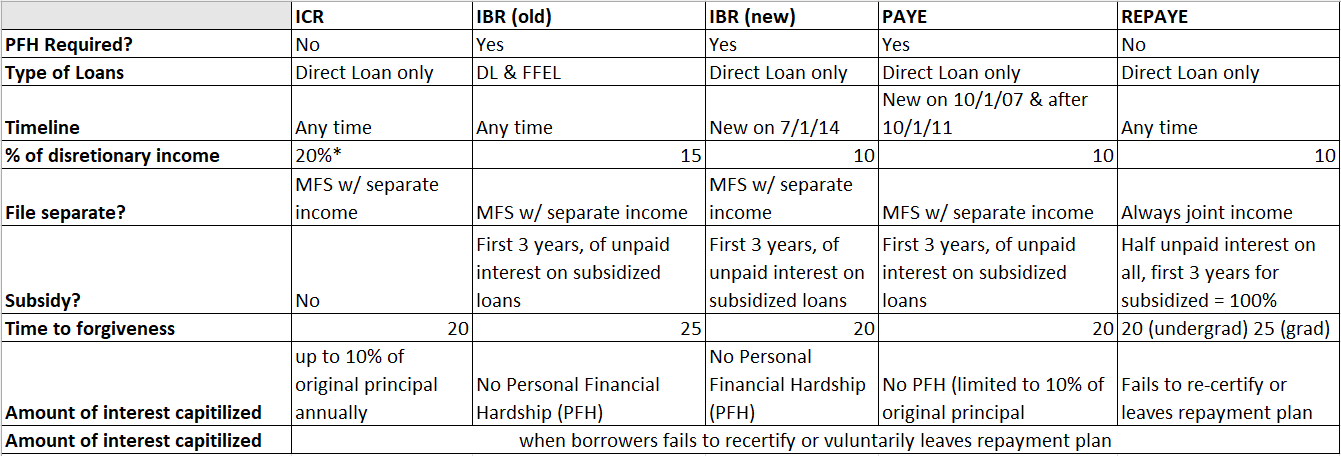 When looking to understand the different income driven repayment plans, I created a tool to help myself and those who I work with understand the loans at a high level: